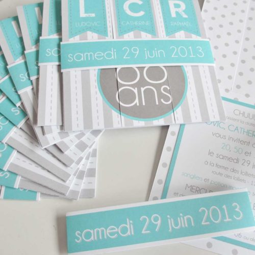 ELLE EST MAINTENUE PAR UN LIEN EN PAPIER 350G/M2 AVEC LA DATE DE LA FÊTE