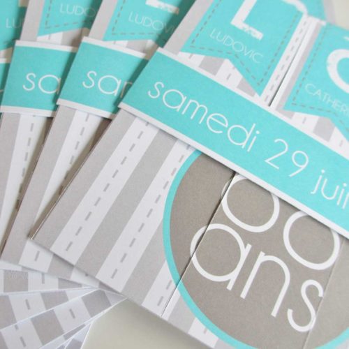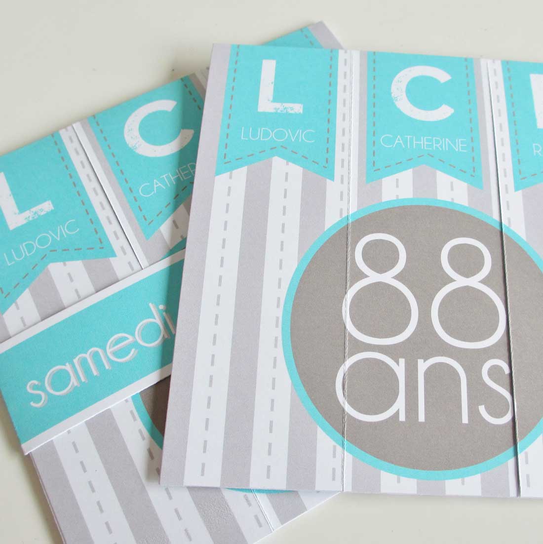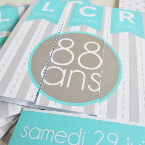 CARTE DOUBLE PLIÉE VERTICALEMENT FORMAT CARRÉ 14X14CM + LIEN AVEC LA DATE DE LA FÊTE + DÉTAILS À L'INTÉRIEUR