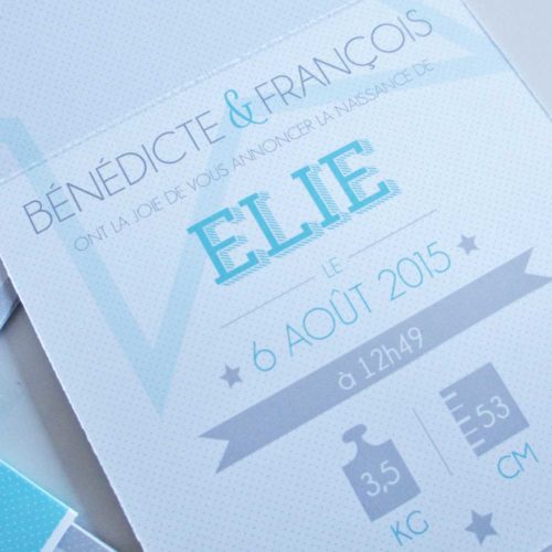 La photo de ce faire-part m’a été fournie par les parents d’Élie; elle a été réalisée par un photographe professionnel.