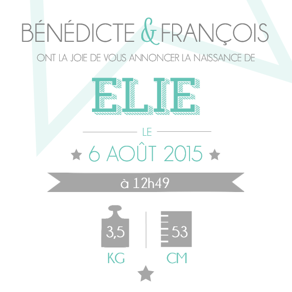 La photo de ce faire-part m’a été fournie par les parents d’Élie; elle a été réalisée par un photographe professionnel.