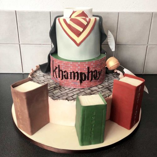 Ci-contre vous pourrez également voir des photos du gâteau d’anniversaire et des cupcakes sur le même thème réalisés par DANS LA CUISINE D’ALICIA.