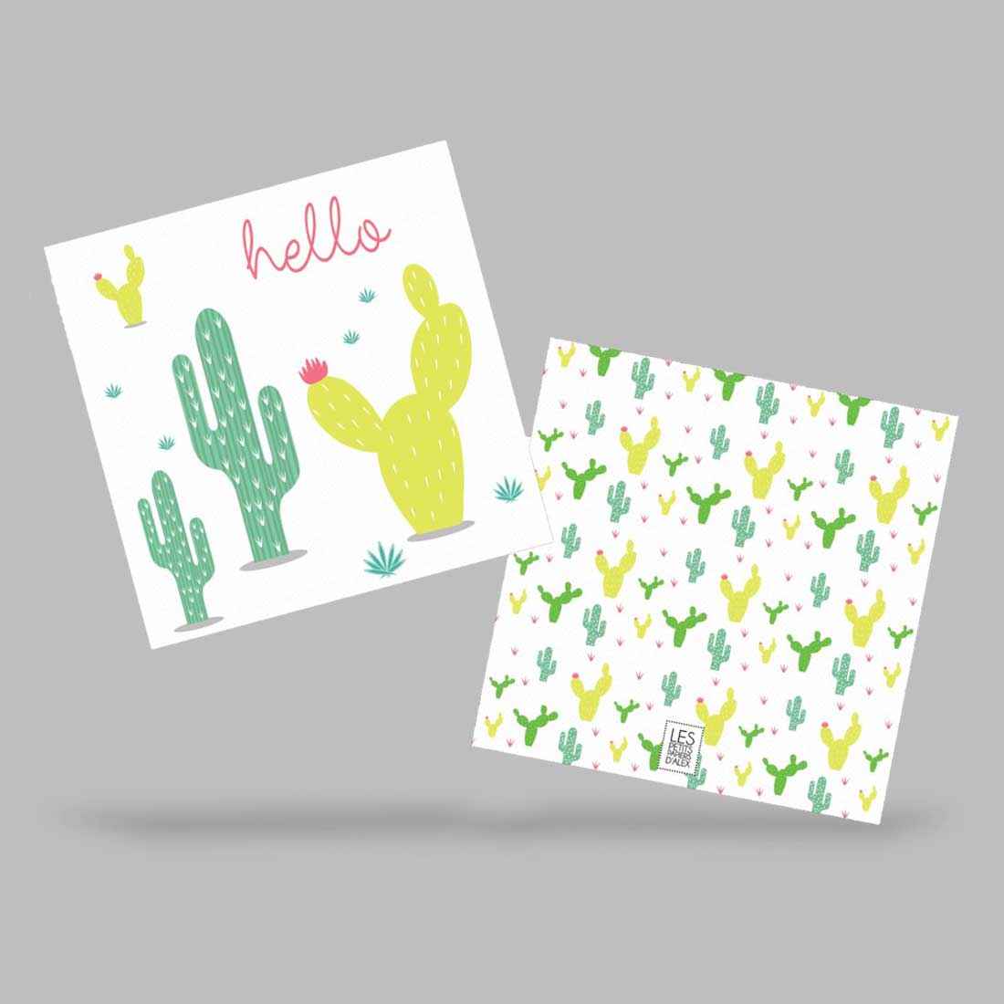 Hello Cactus Prix: 4.00 CHFCode produit: DIVERS017CARTE DOUBLE FORMAT CARRÉ 14X14CMIMPRESSION JET D'ENCRE SUR PAPIER 350G/M2ENVELOPPE INCLUSE