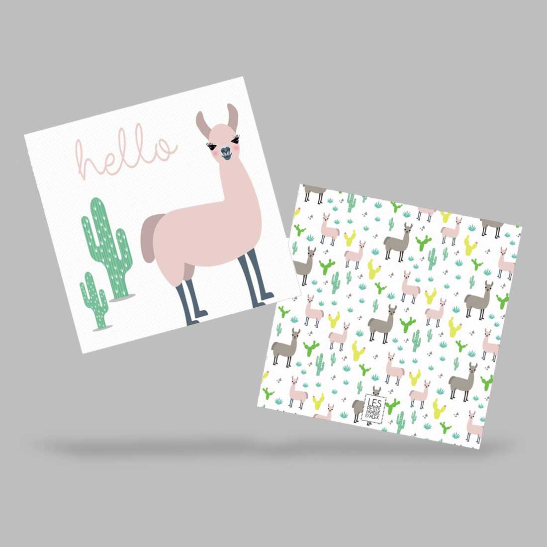 Hello Lama Prix: 4.00 CHFCode produit: DIVERS014CARTE DOUBLE FORMAT CARRÉ 14X14CMIMPRESSION JET D'ENCRE SUR PAPIER 350G/M2ENVELOPPE INCLUSE