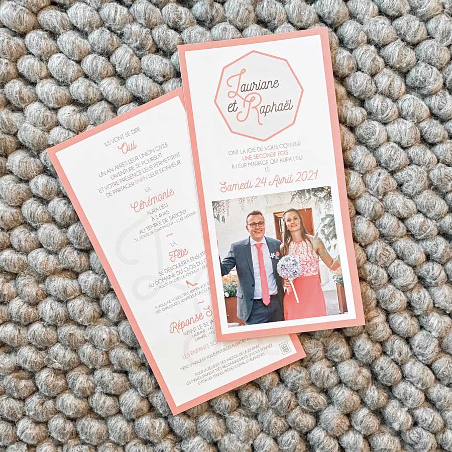 Un grand merci à Lauriane et Raphaël de m’avoir confié la réalisation des faire-part de cet événement spécial, qui pour eux s’est déroulé en deux temps en raison de la crise sanitaire de 2020. Dans le lot des photos ci-contre vous pourrez également découvrir la version 2020 de ce faire-part.