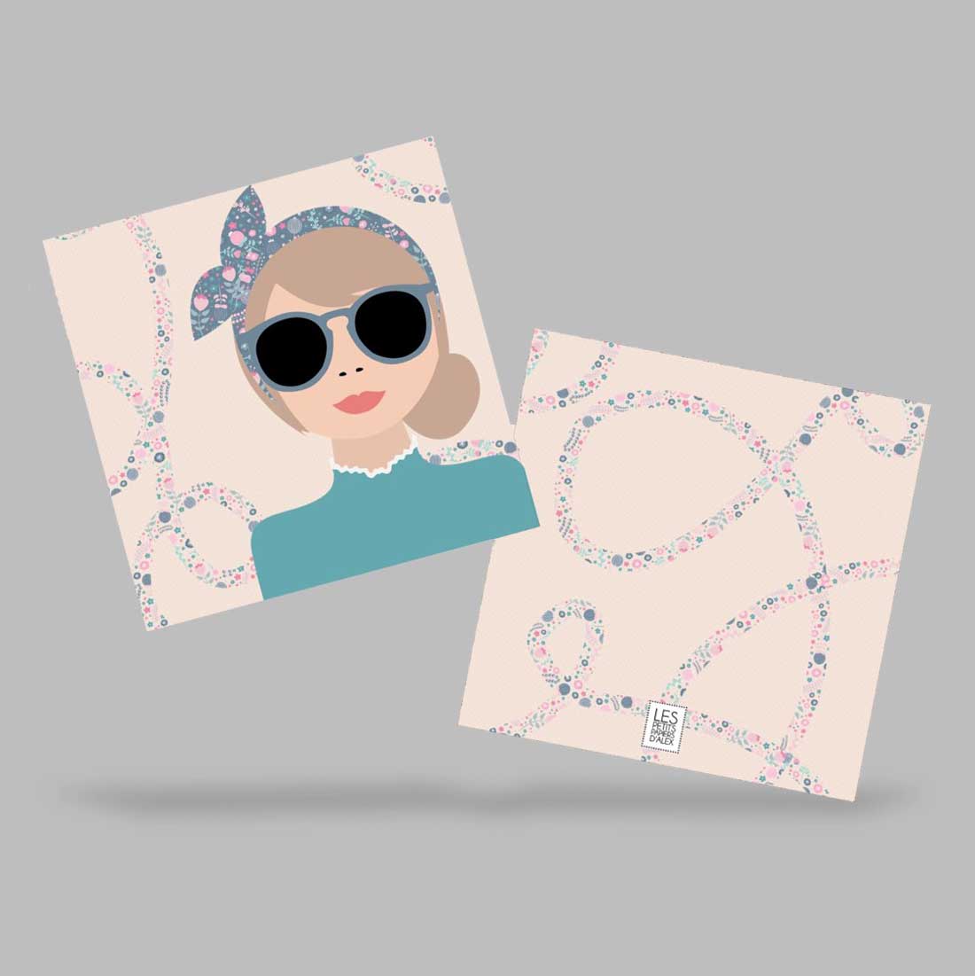 CARTE DOUBLE PLIÉE VERTICALEMENT FORMAT CARRÉ 14X14CM + LIEN AVEC LA DATE DE LA FÊTE + DÉTAILS À L'INTÉRIEUR