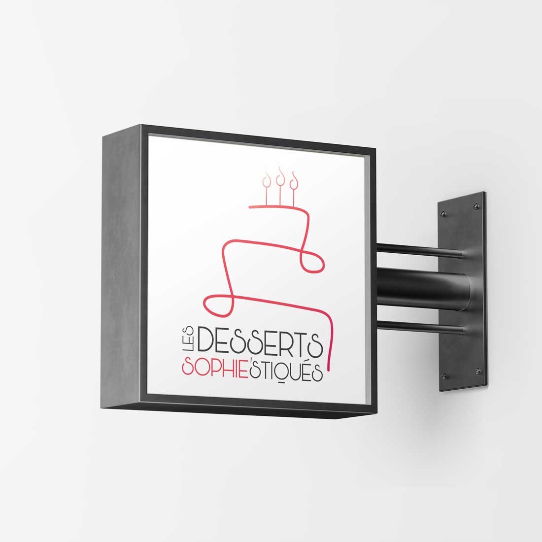 Une ligne simple en dégradé qui laisse deviner le reste du dessert beau, bon, brillant et Sophie’stiqué ainsi qu’une police d’écriture avec un peu de piquant !