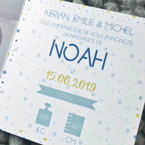 La photo de ce faire-part m’a été fournie par les parents de Noah.