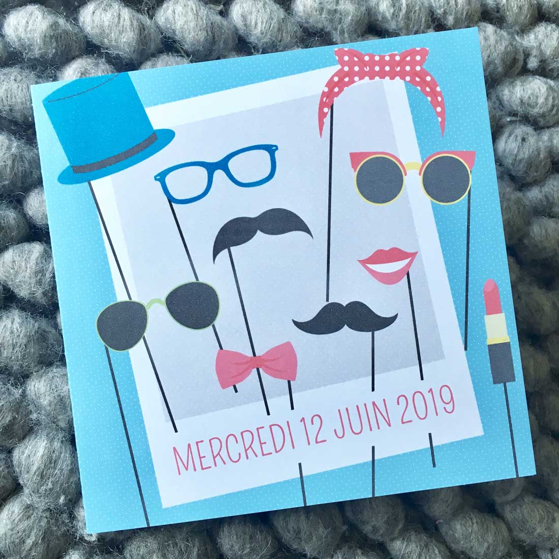 CARTE DOUBLE FORMAT CARRÉ 14X14CM DÉTAILS DE LA FÊTE À L'INTÉRIEUR