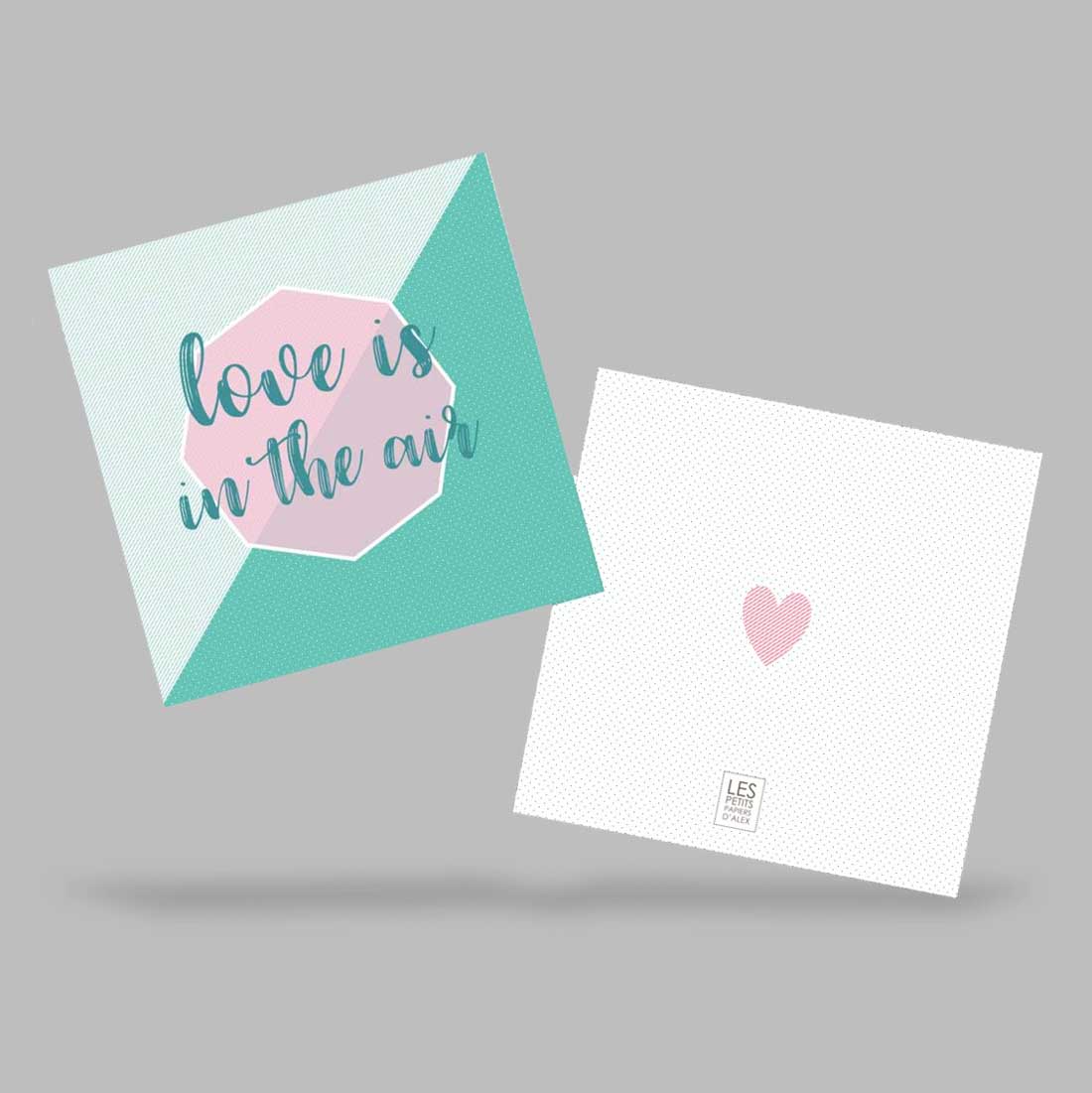 Valentine Mint Prix: 4.00 CHFCode produit: DIVERS006CARTE DOUBLE FORMAT CARRÉ 14X14CMIMPRESSION JET D'ENCRE SUR PAPIER 350G/M2ENVELOPPE INCLUSE
